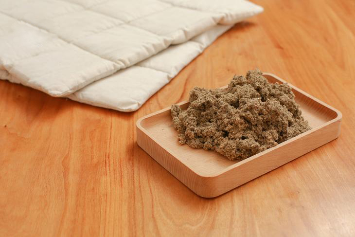包裹着艾绒的内里和背面的布料,我们选用的是没有任何印染的纯棉坯布,保证艾绒不会受到印染布料的污染。